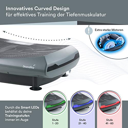 La piattaforma vibrante Skandika V2000 è una delle pedane finora esaminate che presenta alcune tra le caratteristiche più moderne e versatili. Infatti non si tratta della classica pedana vibrante dalle funzioni basic e anche piuttosto classiche. Piuttosto questo modello offre la possibilità di realizzare un tipo di allenamento molto vario e soprattutto altamente personalizzabile.